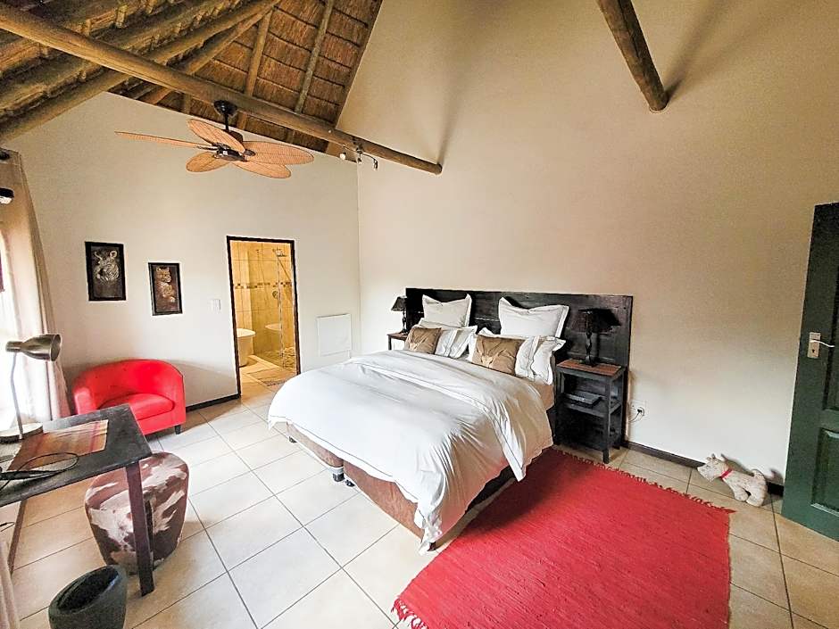 This spacious room has a thatched roof and wooden floors, and offers a balcony with views over the pool and garden. It comes with a small seating area with TV and tea/coffee facilities.